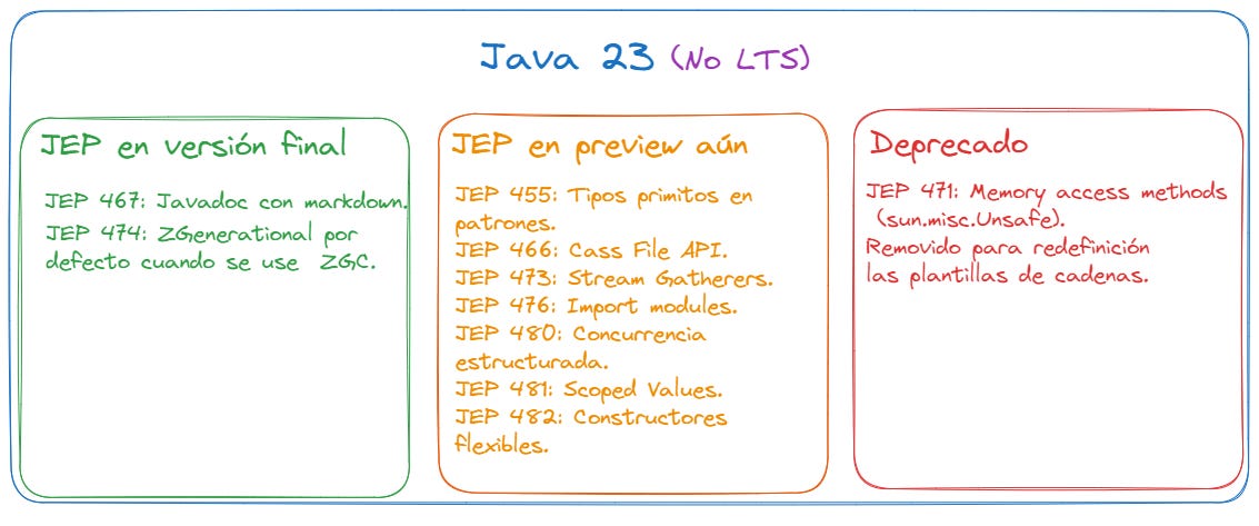 Sin embargo es importante estar al día, porque lo que hoy sale como preview en una versión no LTS es muy probable en la próxima LTS (que será Java 25, en el 2025) sea ya una feature definitiva de Java.